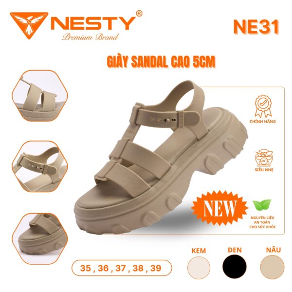 Sandal Đế Cao – Siêu Nhẹ Quai PVC Mềm Dẻo – [NE35]
